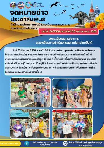 สพอ.เมืองสมุทรปราการ ตรวจเยี่ยมการดำเนินงานตลาดนัดคนไทยยิ้มได้