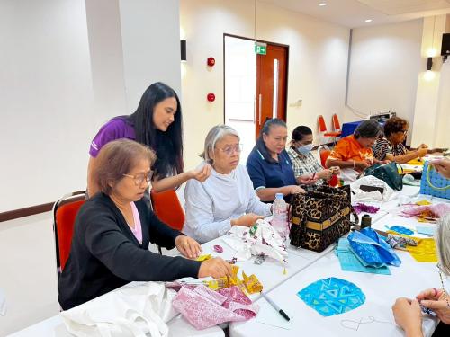 นางอรจิรา ศิริมงคล นายกเหล่ากาชาดจังหวัดสมุทรปราการ เป็นประธานในกิจกรรมประดิษฐ์ผีเสื้อจากผ้าไทยประจำถิ่น จังหวัดสมุทรปราการ เพื่อสนับสนุนการออกร้านงานกาชาดของแม่บ้านมหาดไทย ประจำปี 2568 พร้อมด้วยนางสาวเจริญขวัญ เกตุเพชร พัฒนาการอำเภอเมืองสมุทรปราการ และเจ้าหน้าที่สำนักงานพัฒนาชุมชนอำเภอเมืองสมุทรปราการ ร่วมกับ คณะกรรมการพัฒนาสตรีอำเภอเมืองสมุทรปราการ และคณะกรรมการเครือข่าย OTOP อำเภอเมืองสมุทรปราการ จังหวัดสมุทรปราการ ณ ห้องประชุม ชั้น 2 อาคารกองสวัสดิการสังคม (ตึกผู้สูงอายุ) #สำนักงานเทศบาลเมืองแพรกษาใหม่ อำเภอเมืองสมุทรปราการ จังหวัดสมุทรปราการ