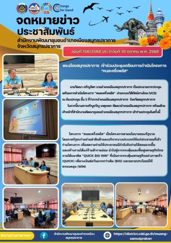 ในการนี้นางสาวเจริญขวัญ เกตุเพชร พัฒนาอำเภอเมืองสมุทรปราการ พร้อมด้วยเจ้าหน้าที่สำนักงานพัฒนาชุมชนอำเภอเมืองสมุทรปราการ เข้าร่วมประชุมในครั้งนี้