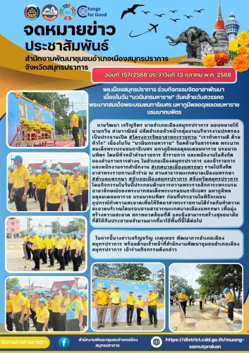 ในการนี้นางสาวเจริญขวัญ เกตุเพชร พัฒนาการอำเภอเมืองสมุทรปราการ พร้อมด้วยเจ้าหน้าที่สำนักงานพัฒนาชุมชนอำเภอเมืองสมุทรปราการ เข้าร่วมกิจกรรมดังกล่าว