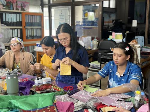 นางสาวเจริญขวัญ เกตุเพชร พัฒนาการอำเภอเมืองสมุทรปราการ พร้อมด้วยเจ้าหน้าที่สำนักงานพัฒนาชุมชนอำเภอเมืองสมุทรปราการ ร่วมกับ คณะกรรมการเครือข่าย OTOP และผู้ผลิต ผู้ประกอบการ OTOP อำเภอเมืองสมุทรปราการ จังหวัดสมุทรปราการ ร่วมประดิษฐ์ผีเสื้อจากผ้าไทยประจำถิ่น จังหวัดสมุทรปราการ เพื่อสนับสนุนการออกร้านงานกาชาดของแม่บ้านมหาดไทย ประจำปี 2568 ณ #สำนักงานพัฒนาชุมชนอำเภอเมืองสมุทรปราการ ชั้น3 #ที่ว่าการอำเภอเมืองสมุทรปราการ #อำเภอเมืองสมุทรปราการ #จังหวัดสมุทรปราการ