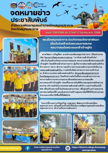 ในการนี้นางสาวเจริญขวัญ เกตุเพชร พัฒนาการอำเภอเมืองสมุทรปราการ พร้อมด้วยเจ้าหน้าที่สำนักงานพัฒนาชุมชนอำเภอเมืองสมุทรปราการ เข้าร่วมกิจกรรมดังกล่าว